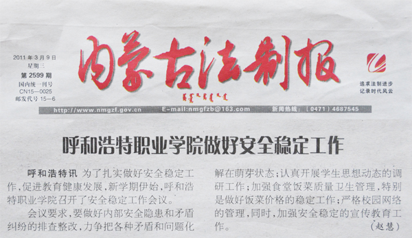 内蒙古法制报:呼和浩特职业学院做好安全稳定工作
