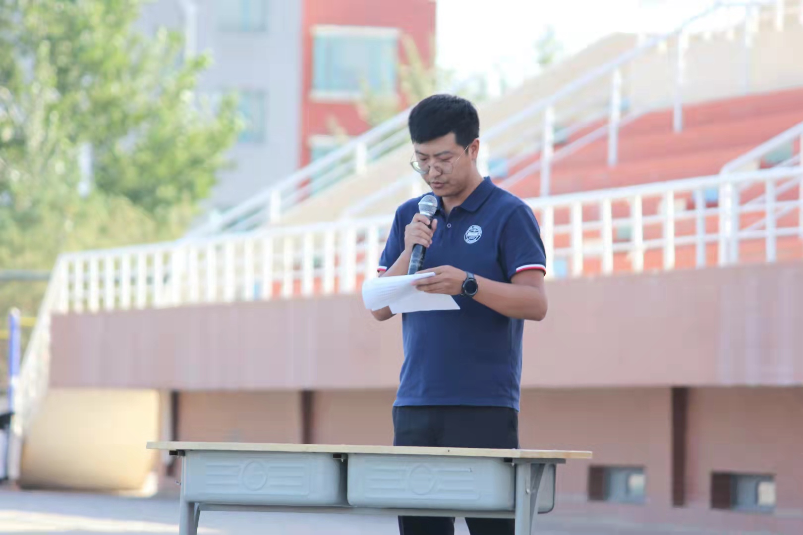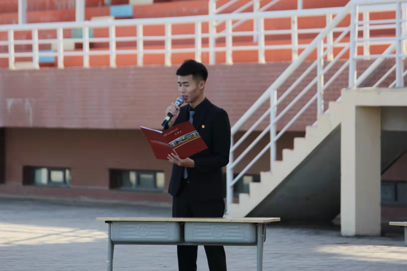 开学典礼在中华人民共和国国歌声中拉开帷幕。首先,殷晓飞主任代表机械与电力工程系进行了发言,欢迎新学生的到来,要求同学们遵守学校的各项规章制度,在疫情防控期间做好个人防护和相关规定,希望同学们在这三年里学业有成,收获满满,不负家长、老师、社会和国家的重托,为实现中华民族伟大复兴而贡献自己的一份力量。