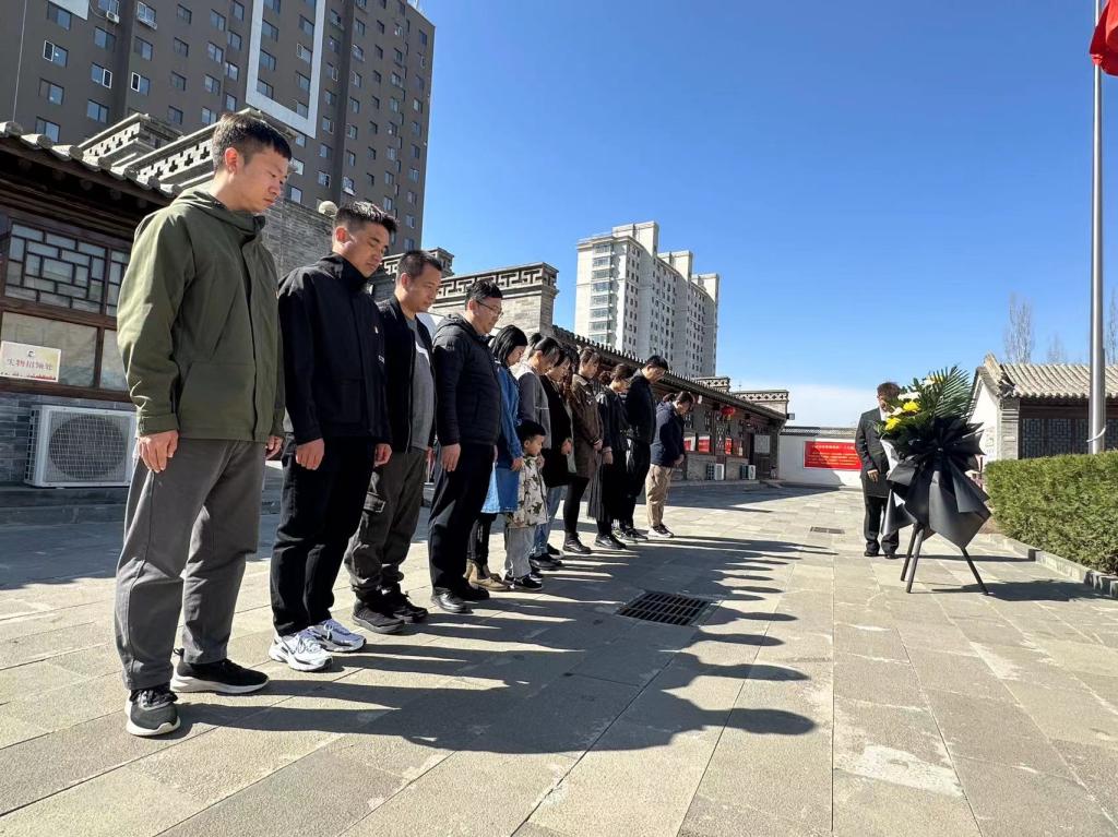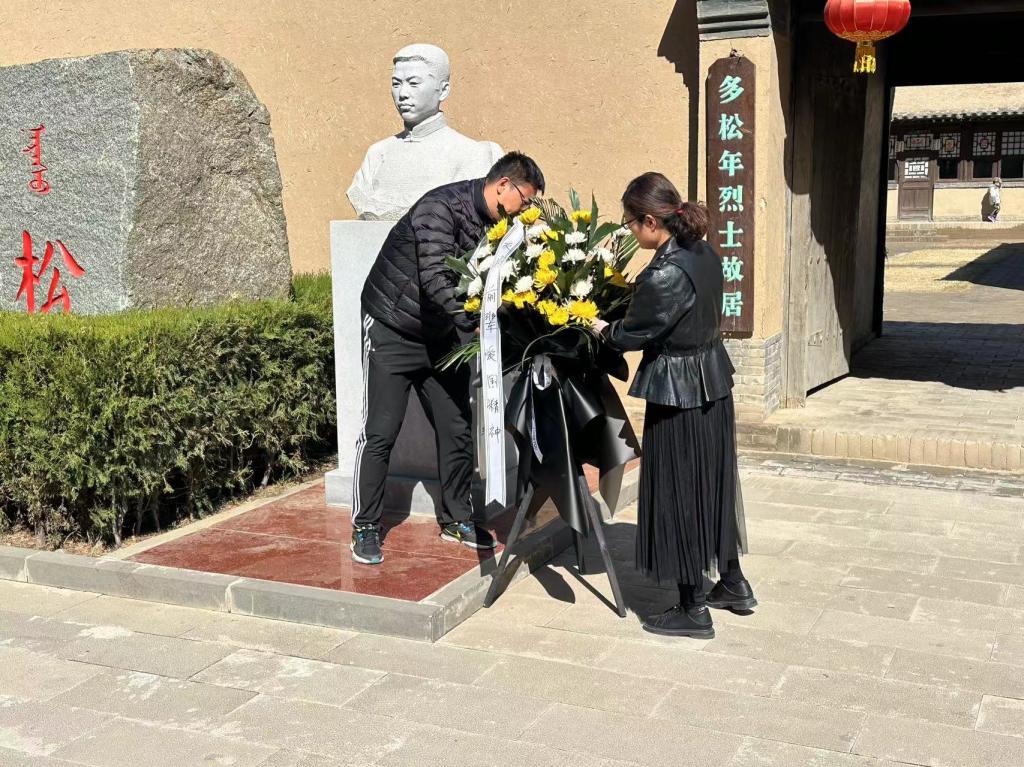 随后,党员们为多松年烈士塑像敬献花篮,在塑像前进行了默哀,表达对烈士的悼念之情。