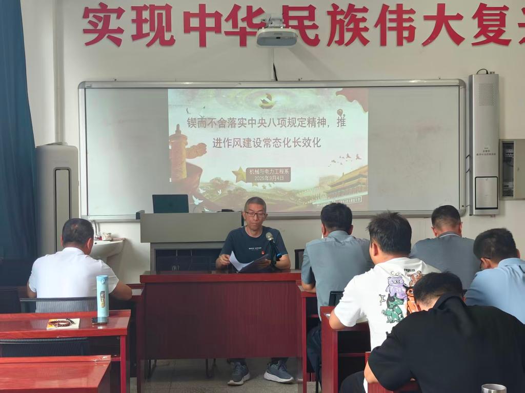 按照机械与电力工程系党总支学习计划,9月4日下午3点,机械与电力工程系党总支组织全体党员,在格物楼411教室举行了以锲而不舍落实中央八项规定精神,推进作风建设常态化长效化为主题的集中学习活动。