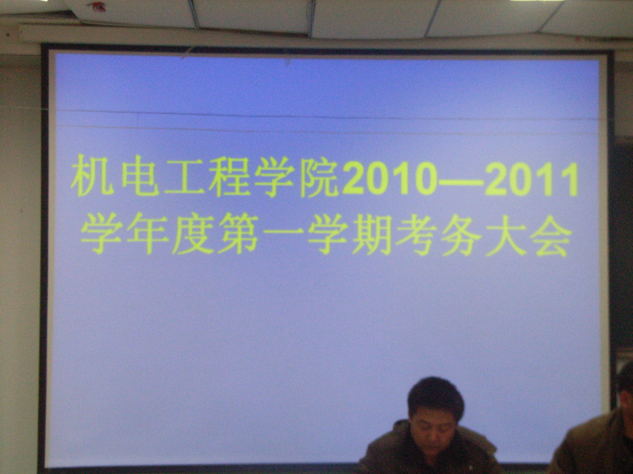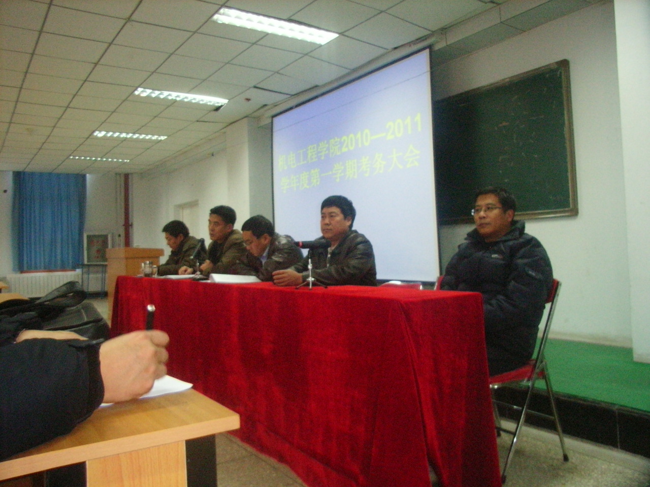 机电工程学院于2010年12月13日下午在东校区北教学楼109教室召开了全体教师考务大会。出席本次大会的有机电工程学院党总支书记崔星、院长堵根民、副院长张世昌教务科科长王美、副科长郭建东及全体教师。