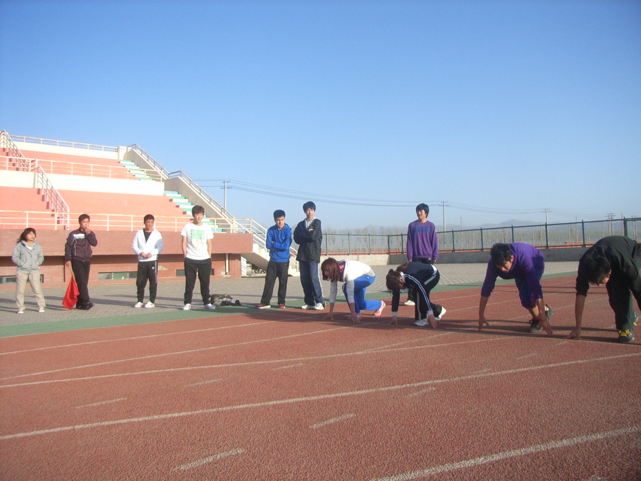 百米运动员们都以一种积极的心态对待训练,他们纷纷表示对待训练就像对待正式比赛一样,以自己最佳状态来应对即将到来的校园运动会。