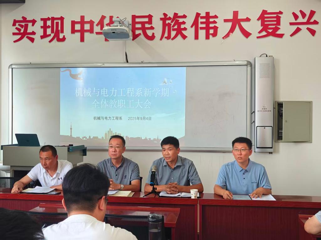机械与电力工程系于9月4日下午2:00在格物楼411教室召开了全体教职工大会。会议由殷晓飞主任主持,全体教职工参加了会议。