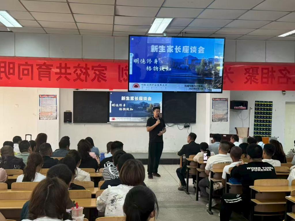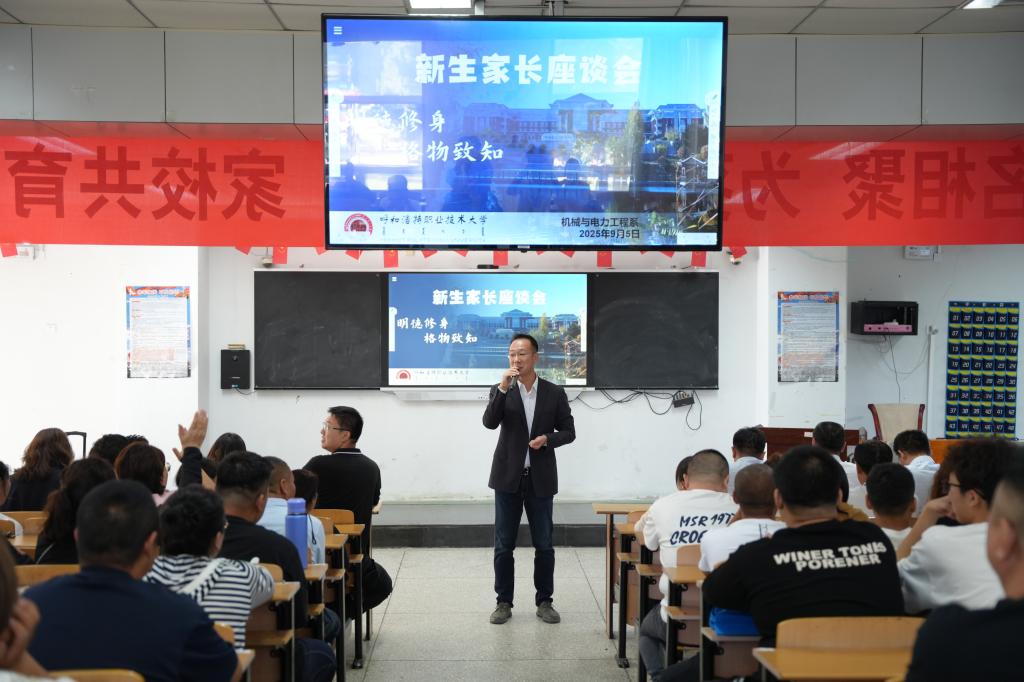 为了进一步强化家校合作,汇聚教育力量,帮助新生家长全面了解机械与电力工程系的教育特色和育人理念,共同促进2025级新生的成长与发展。机械与电力工程系于9月5日下午在静学楼101阶梯教室成功举办了2025级新生家长见面会。系领导班子成员、科室干部、专业负责人、骨干教师、新生辅导员及班主任与部分新生家长齐聚一堂,共同探讨教育新篇章。见面会由党总支书记巴特尔主持。