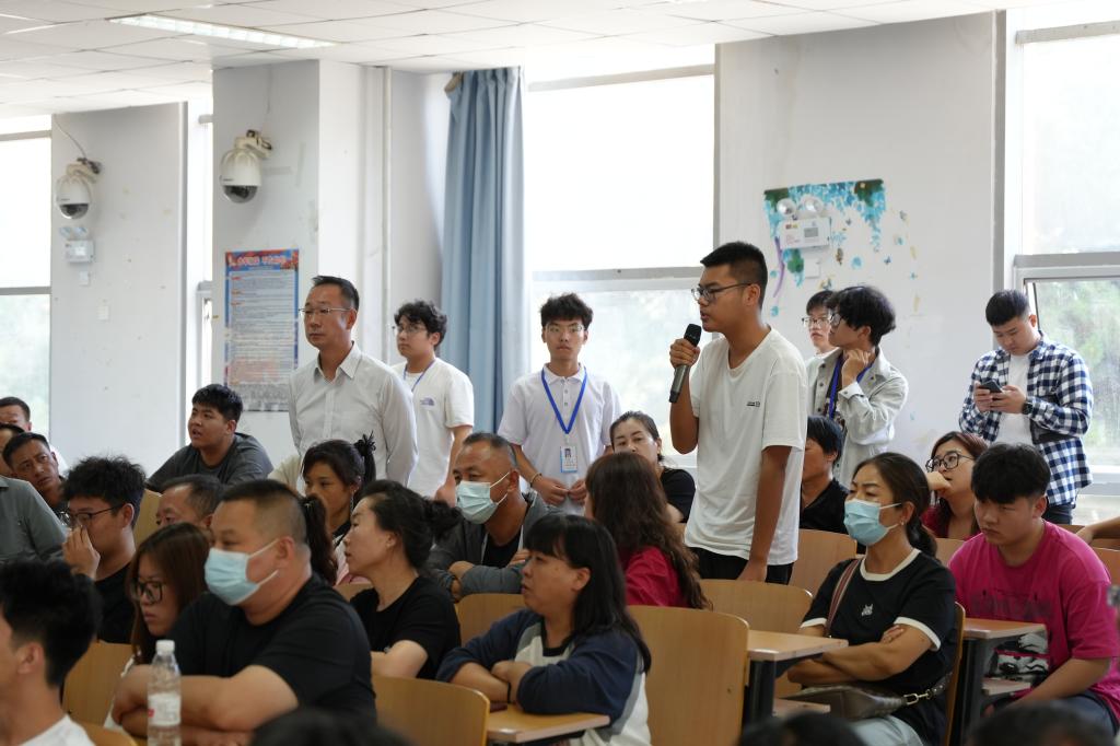 殷晓飞主任针对职业本科人才培养方案、专业课程设置等家长普遍关心的问题进行了深入地阐释。他通过案例分析,阐述了什么是职业本科以及本专科人才培养模式,希望家长们能持续关注孩子的学业进展,鼓励他们勤奋学习,培养独立思考和解决复杂问题的能力。各科室负责人也依次围绕学生管理、教学管理、就业指导、校企合作、定向培养等方面做了详细介绍。