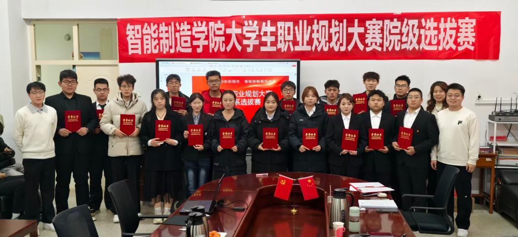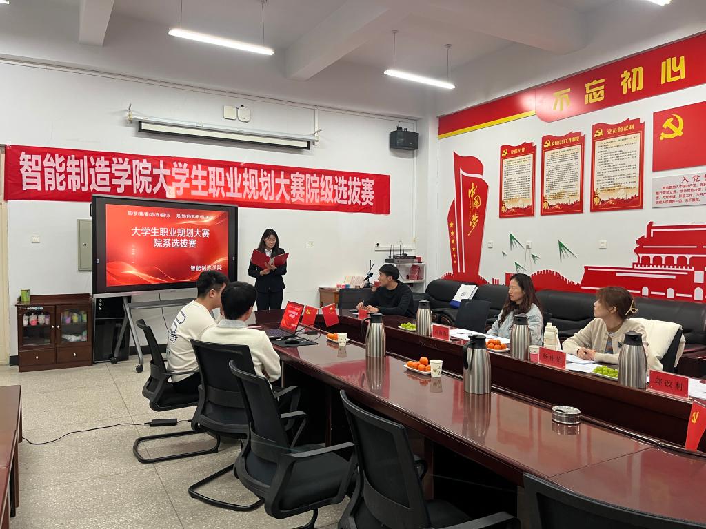 12月4日下午,智能制造学院在格物楼406会议室举办了智能制造学院大学生职业规划大赛院级选拔赛。比赛邀请内蒙古机电职业技术学院校企合作与就业服务处就业指导教研室主任杨丽娟、呼和浩特职业技术大学经济管理学院副主任邬改利、智能制造学院副教授高海燕老师三位老师担任评委;就业科全体成员、指导教师以及参赛选手参加比赛。