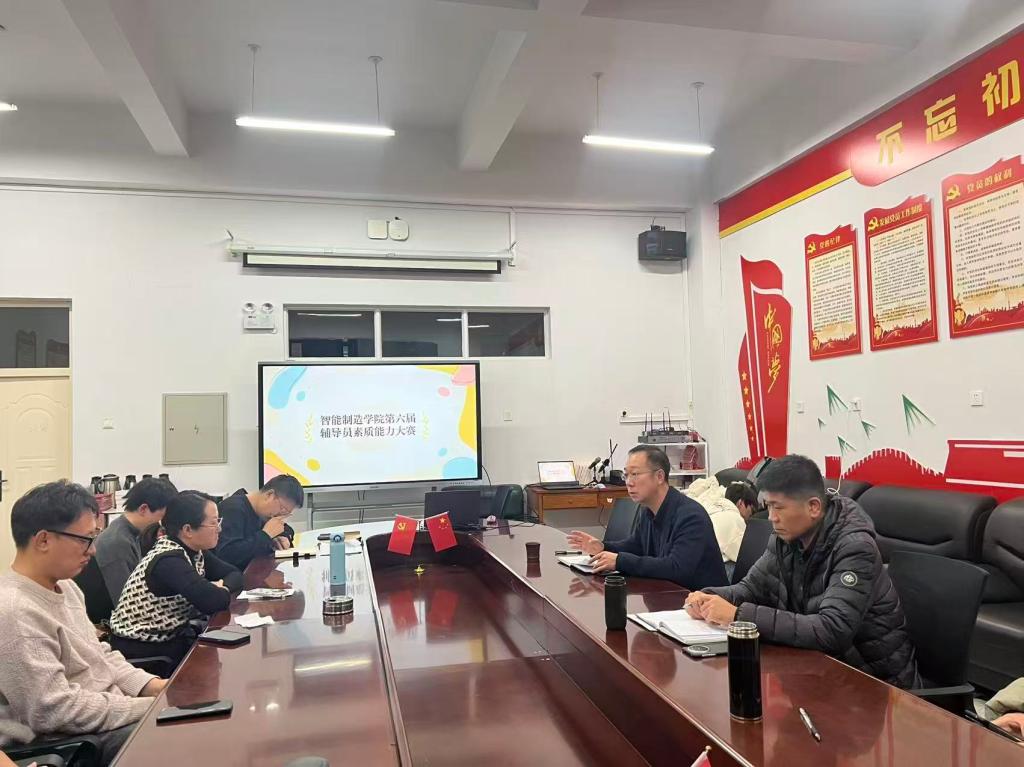 为打造高素质专业化的辅导员队伍,夯实思想政治教育工作基础,践行“以赛促建、以赛促学、以赛促干”的育人机制,推动学院学生工作提升质效,智能制造学院于12月9日下午在格物楼406会议室成功举办了第六届辅导员素质能力大赛。比赛邀请了学院党总支书记巴特尔、主任殷晓飞、副主任吴战国、办公室主任乔鑫、学团科科长张建峰担任评委,全体专兼职辅导员参加了比赛。