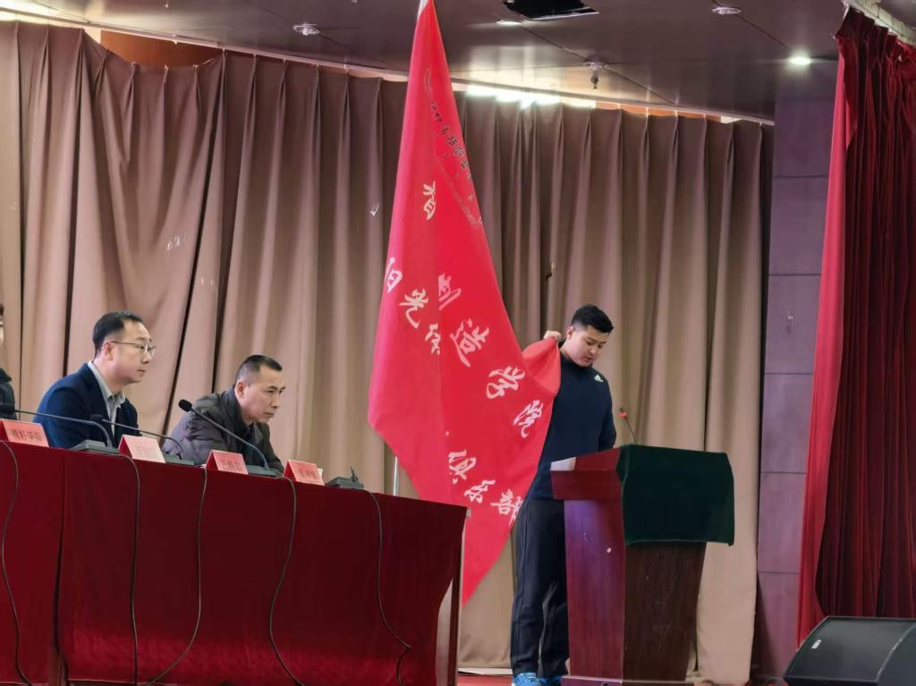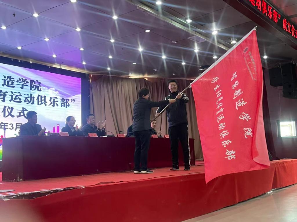 随后,由体育教学部主任范丽珺为学生阳光体育运动俱乐部授旗,张建峰科长代表体育运动俱乐部接旗。参会嘉宾为俱乐部指导教师和各运动项目负责人颁发了聘书。