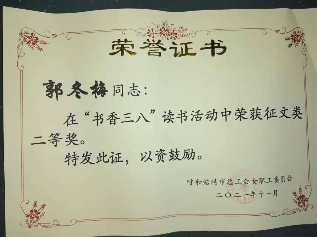 本次活动共收到征文、家书、摄影书画等各类参赛作品200篇,经评审小组认真评选,共评选出征文类一等奖10篇,二等奖30篇,三等奖42篇,其中学院发展规划与科技处教师郭冬梅荣获征文类二等奖。