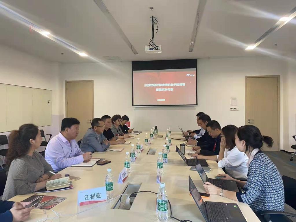 京东物流教育生态负责人李铁、京东物流教育产业学院负责人李树杰、京东物流教育市场经理秦宇倩等陪同张玉柱院长一行参观了京东指挥中心、无人超市、京东物流、京东物流科技研发中心等,观摩了京东物流高度自动化、数字化、智能化的设备,感受到京东物流在科技创新的支持下,从电商企业向新型实体经济转型的显著成果。参观后,京东物流副总裁姜耀东先生及京东物流教育相关部门负责人与张玉柱院长一行就校企人才共建、专业共建、课程共建、产业学院共建等方面进行了进一步的深入座谈交流。座谈会上,京东物流副总裁姜耀东介绍了京东物流的发展以及进一步适应职业教育高质量发展意见相关精神下,京东物流教育的企业主张和做法;张玉柱院长表示,震撼于高科技在京东物流的应用发展,同时就职业教育的政策与趋势方面给予京东物流教育进行深入解读;京东物流教育就“一体化供应链人才培养”及共建产业学院的可行性、优秀成果案例做了展示;毕力格图处长就定制班、毕业生就业、共建产业学院事项与京东方面进行了深入交流;经济管理与法学系苏日娅主任一行就营销、电商、物流等专业共建、专业群建设、岗课赛证研融合发展、生产性实训基地建设、创新创业等方面与京东物流教育进行了深入研讨。