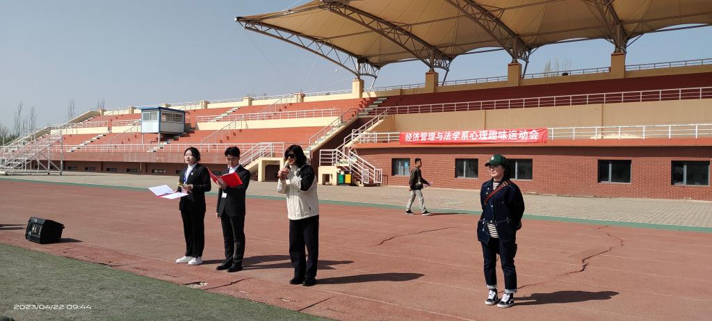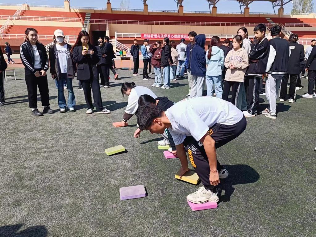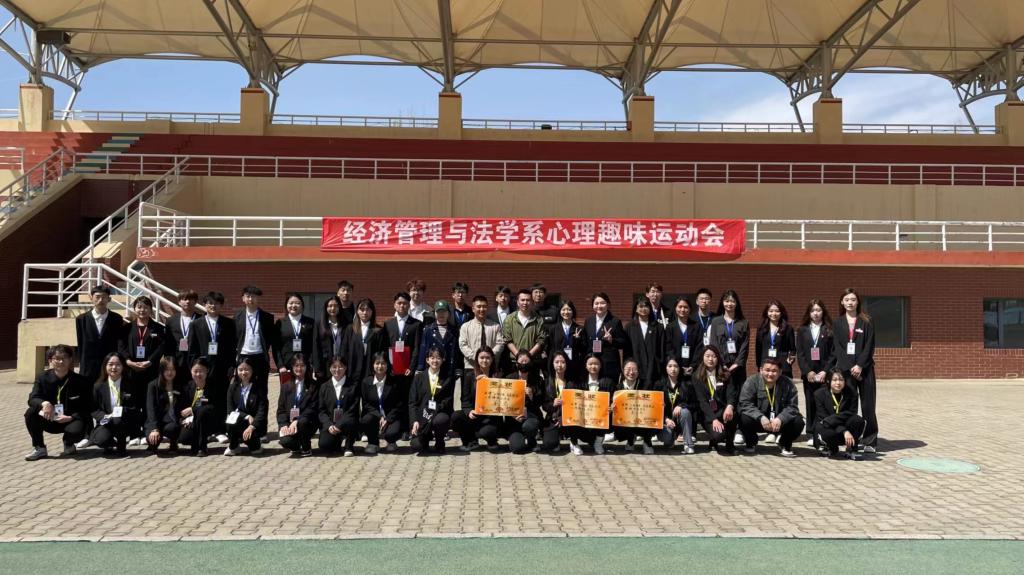 为进一步推进我系大学生心理健康教育工作, 引导同学们关注心理健康, 提高学生身心素质, 经济管理与法学系于2023年4月22日上午在操场举办“心向阳光,青春绽放”心理趣味运动会。经济管理与法学系党支部书记葛风云、学团科科长包和平、团总支书记包春良、就业科科长巴图、辅导员莲花及2021、2022级各班级学生参加了本次活动。