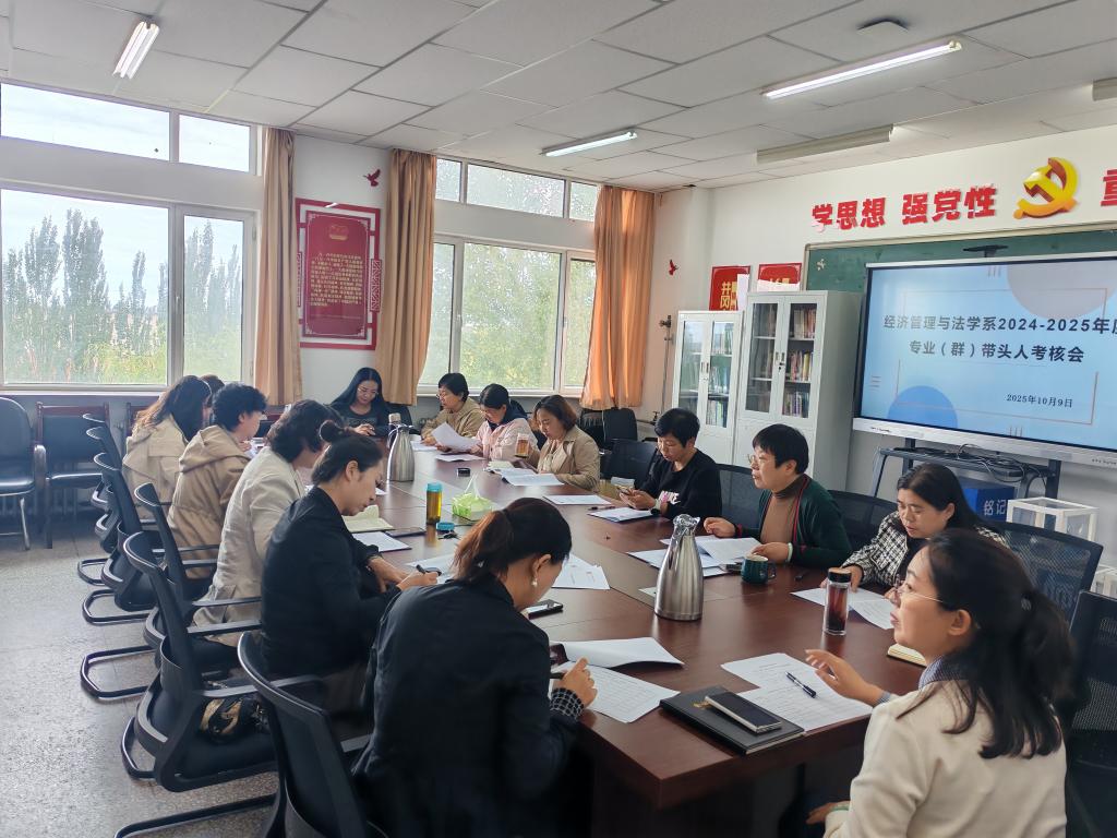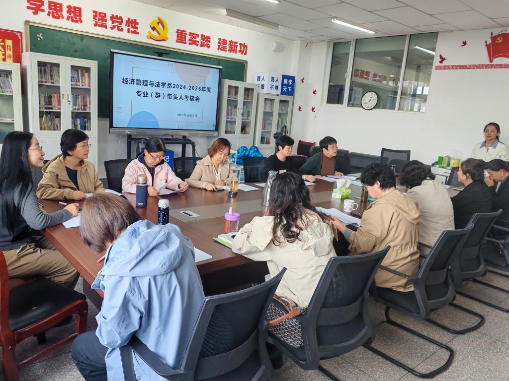 根据《呼和浩特职业学院专业带头人选拔聘用与管理办法》要求和教务处下发的通知,经济管理与法学系成立了由党总支书记、主任、各专业副教授以上教师组成的专业(群)带头人考核工作组,于10月9日下午在品学楼422会议室召开2024-2025专业(群)带头人年度考核工作会议。