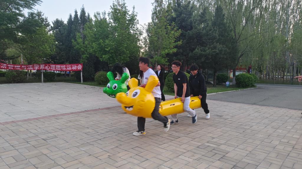 为进一步加强心理健康教育工作,引导学生释放压力、增强心理素质,2025年5月15日,我系在品学楼西侧停车场举办了一场别开生面的心理趣味运动会。本次运动会设置 “毛毛虫竞速”“一圈到底”“鼓动人心”“不倒接力” 等多个趣味项目,将心理健康教育巧妙融入体育运动之中,吸引了众多学生踊跃参与。