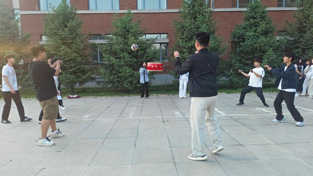 “鼓动人心” 项目无疑是此次运动会的一大亮点。每班团队共同拉住鼓的边缘,通过协调力量和节奏,将排球在鼓面上颠起。球起球落间,队员们全神贯注,不断交流调整。这个项目极大地考验了团队成员的默契与耐心,大家在不断挑战颠球数量的过程中,深刻认识到保持平和心态和积极沟通对于达成目标的关键作用,学会了在压力下调整情绪,增强了心理韧性。