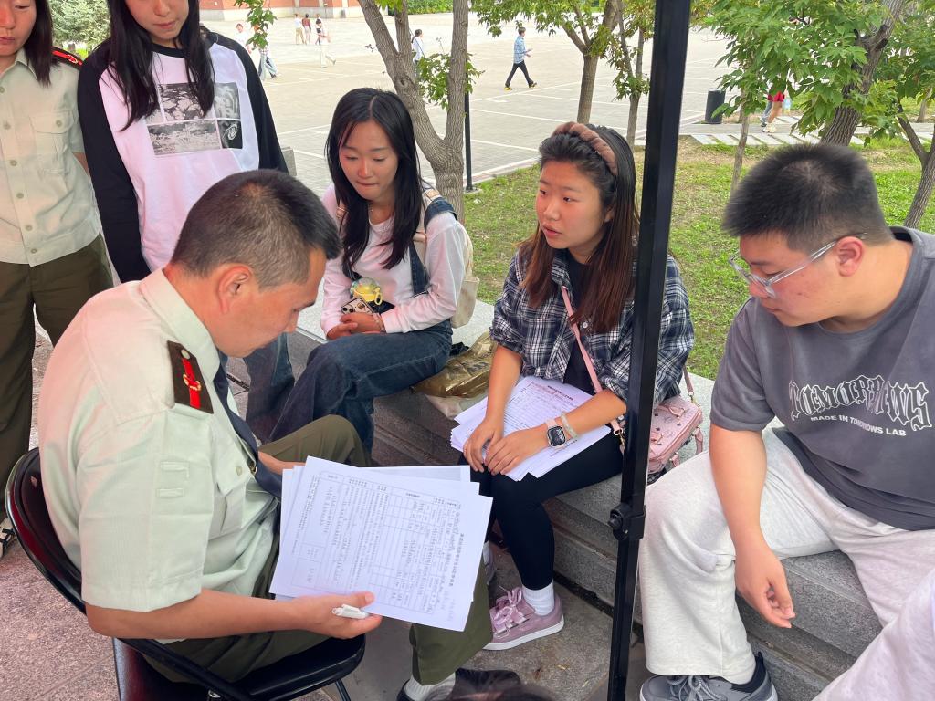 在军训现场,我系专门设立“贫困生认定服务站”,老师们携带政策手册、申请表格等材料驻点办公。面对新生对认定标准、流程的疑问,逐一耐心解答,手把手指导填写表单,现场收集相关证明材料,彻底打通贫困生认定“最后一米”。此举不仅为新生节省了往返训练场与办公室的时间,更避免了因军训任务重而延误申请,让资助政策精准覆盖有需要的学生。与此同时,教导员和指导员训练时,他们全程跟班,实时关注新生的身体状态与训练情绪,及时为中暑、体力不支的学生提供帮助;休息间隙,他们化身“暖心树洞”,与新生面对面交流,倾听入学适应的困惑、军训生活的感受,同步开展安全教育、学风引导与集体意识培养。“指导员就在训练场边,有问题能第一时间找到人,特别安心。”新生小李的话道出了许多同学的心声。