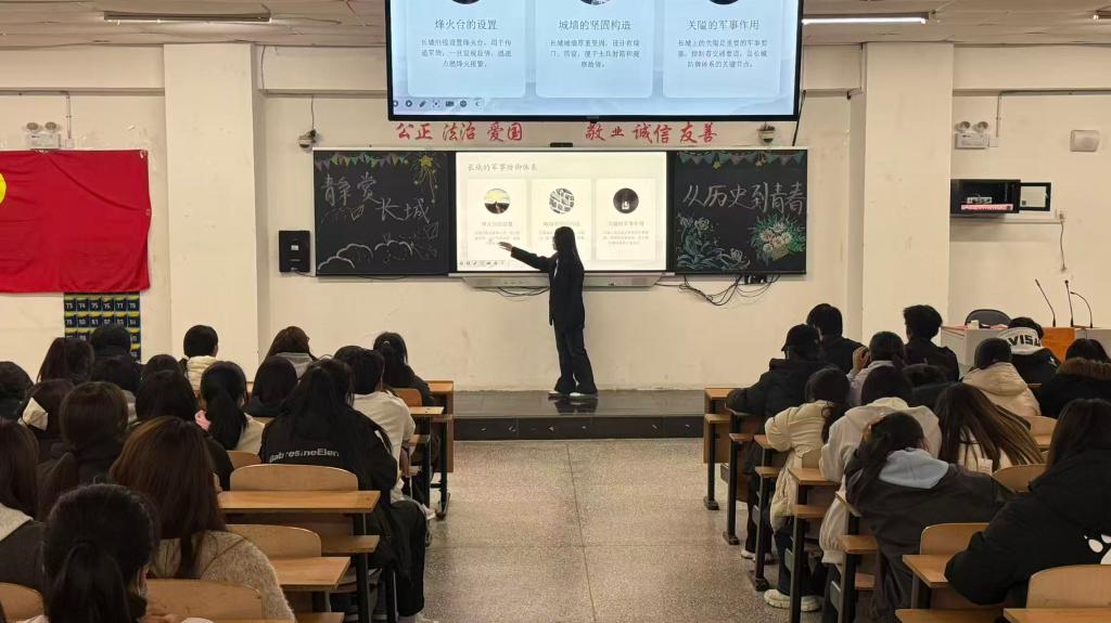 此外,分享会还聚焦长城的建筑艺术与文化意义。PPT展示的砖石结构、夯土技术及城楼砖雕、敌台设计,让同学们感受古代工匠智慧;关于长城作为民族象征、文学灵感源泉及世界文化遗产的内容,引发大家对文化传承的思考,现场形成浓厚学习氛围。