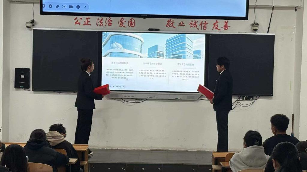 为深入普及法治观念,引导青少年增强法律意识、树立法治信仰,提升运用法律武器维护自身权益的能力,同时丰富同学们的校园文化生活,通过互动形式深化法治知识理解,经济管理与法学系于2025年11月6日在品学楼409教室举办了“法治同行,共护美好生活”主题法治观念普及活动,2024、2025级各班学生代表参加了此次活动。