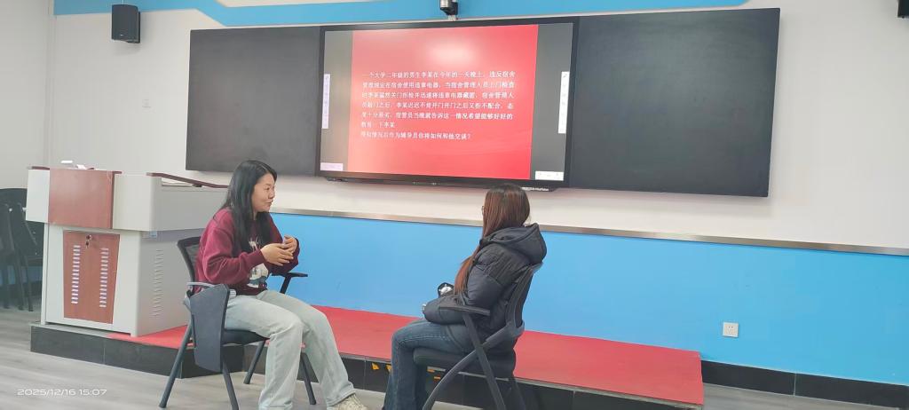 为进一步提升辅导员队伍专业化、职业化水平,夯实立德树人工作根基,2025年12月16日经济管理学院辅导员技能大赛在品学楼410议室圆满落幕。经济管理学院党总支书记葛风云、商务英语教研室李静榕老师、学生科科长包和平以及全体辅导员参与活动。