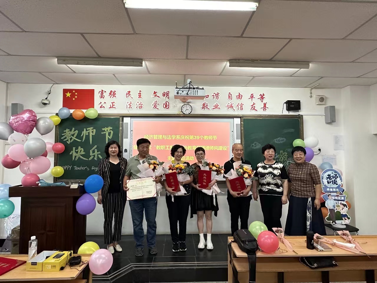 2023年9月5日下午,经济管理与法学系党总支组织全体教职工共同庆祝第39个教师节暨开展第七次“教职工思想政治教育和师德师风建设”主题党日活动。全体教师参加了此次活动。