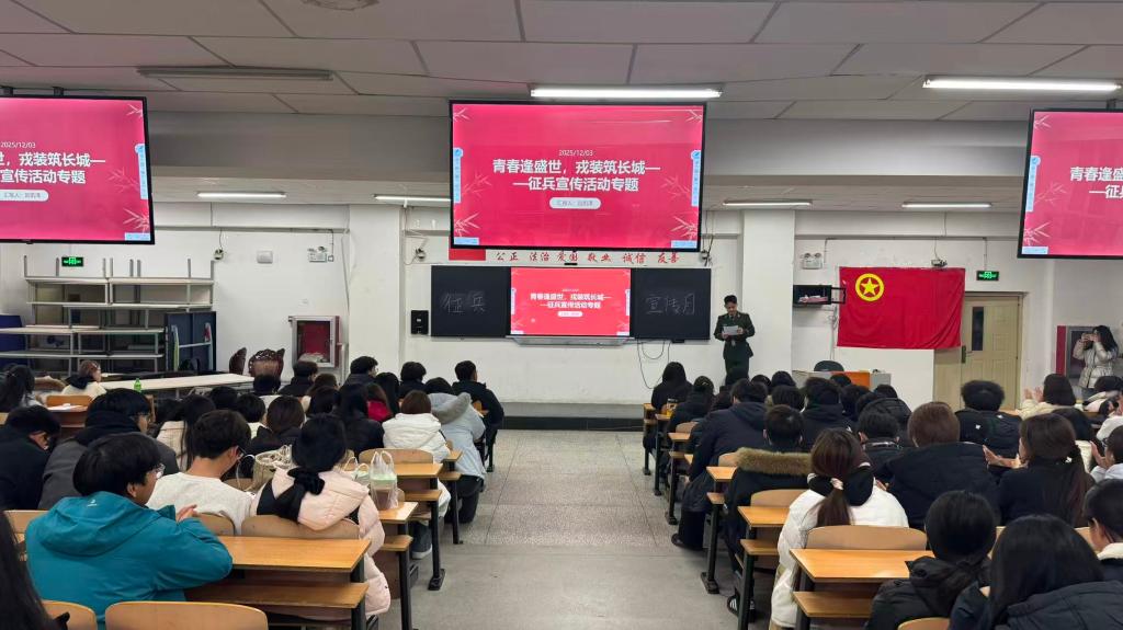 为深入贯彻落实国家征兵工作部署,激发广大青年学子的爱国热情与报国之志,经济管理学院于2025年12月3日到8日,围绕2026年征兵工作要求,精心组织开展了多形式、全覆盖的征兵宣传系列活动,为有志青年投身国防事业搭建起政策解读与报名指引的便捷桥梁。