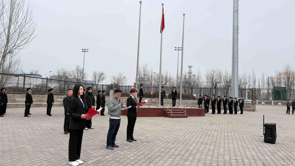 誓言铿锵,初心如磐。在学生科科长包和平的带领下,全体学生举起右拳,庄严宣誓。誓言声声,振奋人心,回荡在校园上空。全体学子以青春之名郑重承诺:热爱祖国,忠于人民;勤学苦练,砥砺品格;遵纪守法,诚实守信;勇于担当,追求卓越。铿锵有力的誓言,彰显了同学们坚定的信念、昂扬的斗志和奋发有为的决心,表达了新时代青年学子立志成才、报效祖国的坚定信念。