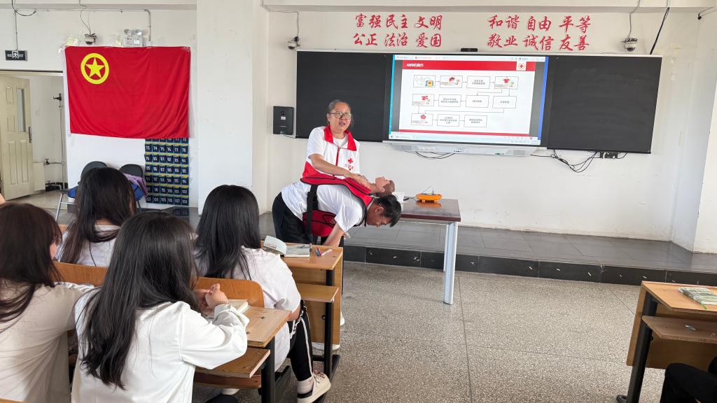 为了让学员们更好地掌握急救技能,培训设置了实践操作环节。在张老师的指导下,学员们分组进行心肺复苏的实际操作。从判断患者意识、调整正确姿势,到进行胸外按压、开放气道,再到创伤部位的清洁、包扎方法,学员们按照标准流程一步一步操作,并在一旁耐心纠正不规范的动作,确保每位学员都能熟练掌握急救技能。培训结束后,青马班学员纷纷表示受益匪浅。此次培训不仅提高了青马班学员的应急救护能力,也进一步强化了他们的社会责任感和使命感,为培养全面发展的新时代青年马克思主义者奠定了坚实基础。