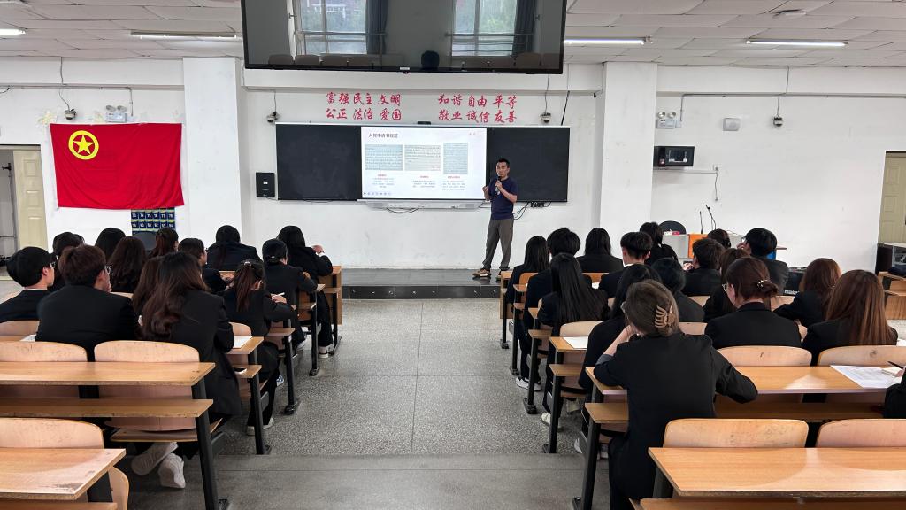为深入贯彻落实习近平新时代中国特色社会主义思想,切实提升青年学生对发展党员工作的认识与理解,经济管理与法学系第十八期 “青年马克思主义者培养工程培训班”于2025年5月28日在品学楼409教室开展了《新时代党员发展工作规范与实务》专题讲座。本次讲座由我系学生党支部书记包春良老师担任主讲,由青马班全体学员参加。