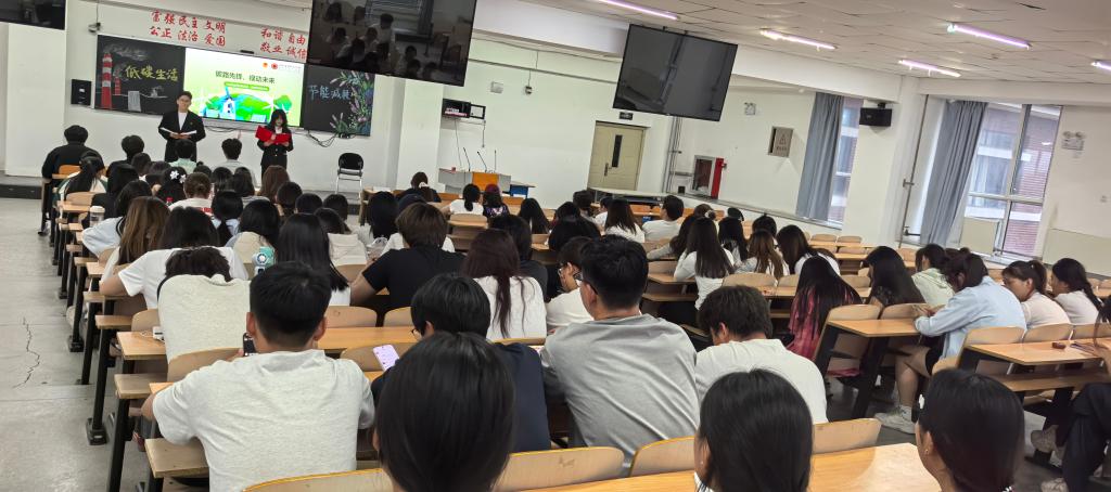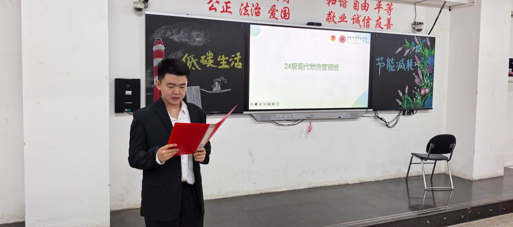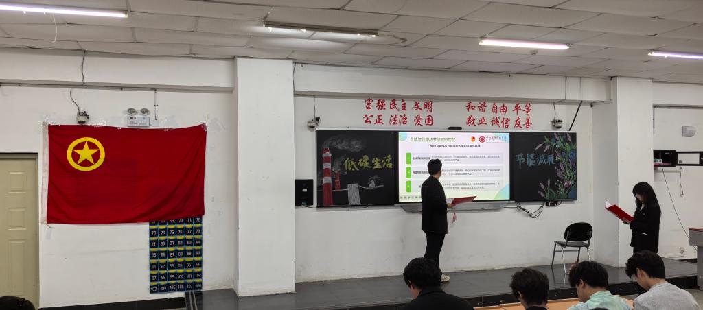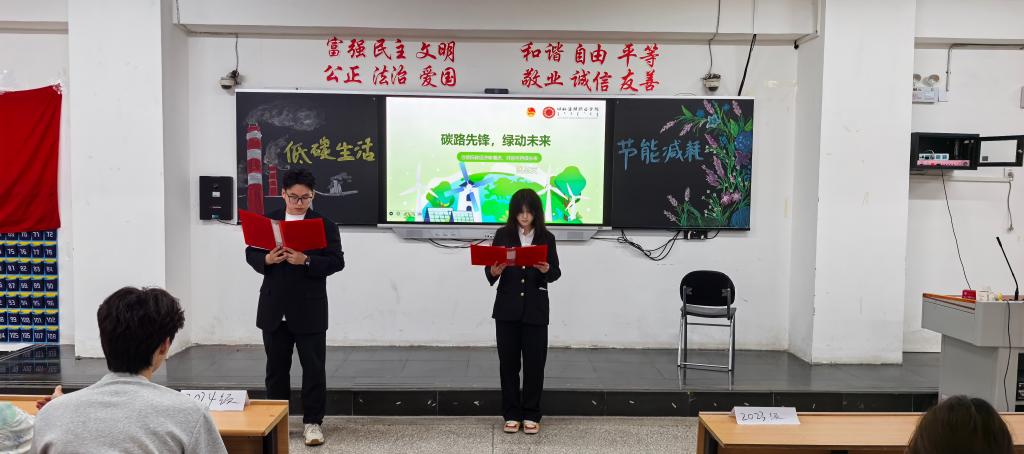 活动伊始,主持人结合党的二十大报告中“推动经济社会发展绿色化、低碳化”的核心要求,指出“节能增效不仅是国家战略所需,更是青年学子践行社会责任的重要实践”。引导学生从“认知节能”转向“主动践行”,为社会输送兼具专业素养与生态意识的复合型人才。在主题展示环节,来自各班级的学生代表以“专业视角+创新表达”为切口,通过精心制作的PPT与生动演讲,呈现了一场“知识与实践并重、理论与案例结合”的节能盛宴。经济管理与法学系的学子不仅能“算清数字账”,更能“扛起责任担”。节能不是“一时的活动”,而是“一生的习惯”。2024级现代物流专业学生王智伟鼓励同学们“将节能理念融入论文选题、社会实践与未来职业规划,让青春在绿色发展的赛道上绽放光芒”。
