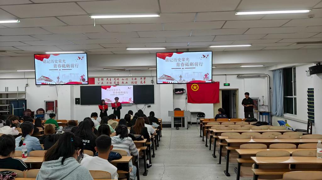 为引导青年学子厚植家国情怀,传承红色基因,进一步激发新时代青年的责任感与使命感,2025年9月11日经济管理与法学系团总支在品学楼 401教室隆重开展 “铭记历史荣光,青春砥砺前行” 主题团日活动。各班级学生代表参加了本次活动。