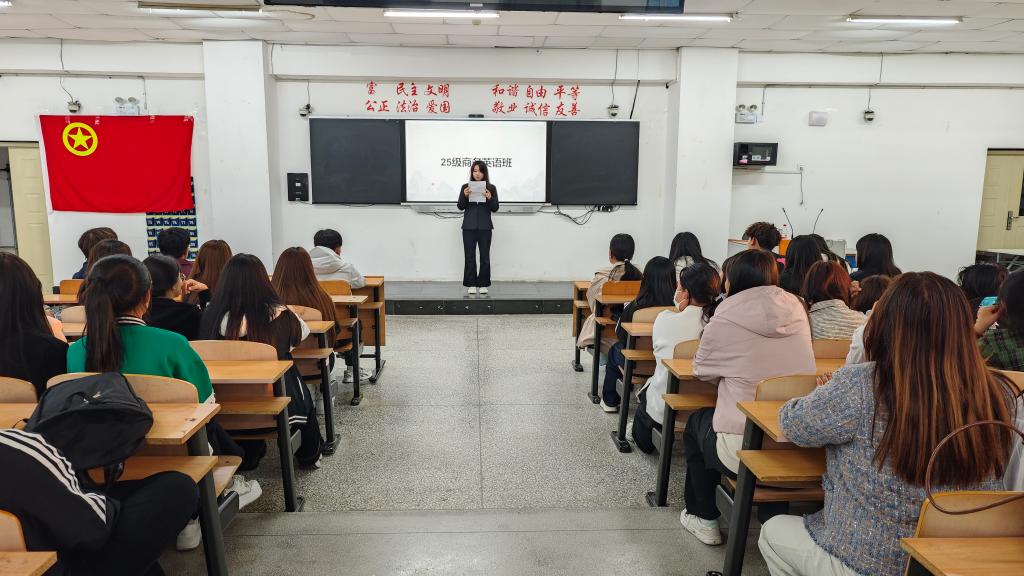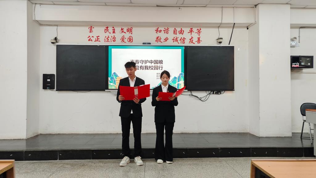 为引导青年学生树立勤俭节约的价值观念,2025年9月28日,经济管理与法学系在品学楼409教室举办“青春守护中国粮 光盘有我校园行”主题团日活动 。活动在庄严的国歌中拉开帷幕,首先由主持人指出粮食安全是国家安全的重要基石,青年一代作为国家未来的建设者,更应肩负起守护粮食安全的责任与使命 。希望通过此次活动,让“光盘”成为校园新风尚,让节约理念融入学生日常,从食堂餐桌延伸至生活点滴 。