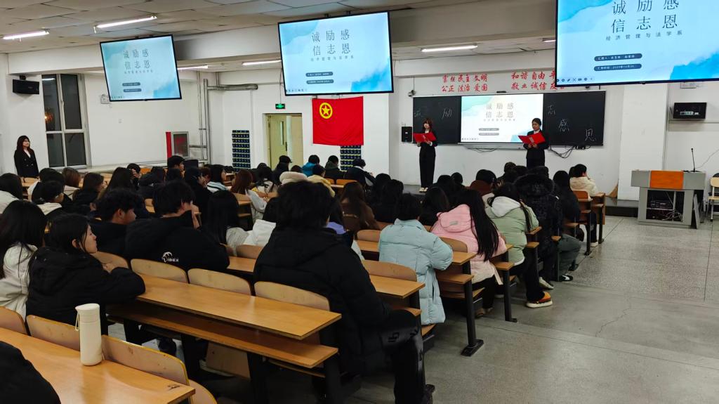 为培育诚信品格、激发奋斗精神、厚植感恩情怀,传播正能量,激励同学们奋发向上,经济管理学院2025年12月8日在品学楼409教室开展了“诚信 励志 感恩”主题演讲团日活动,在全系范围内营造了浓厚的诚信氛围。
