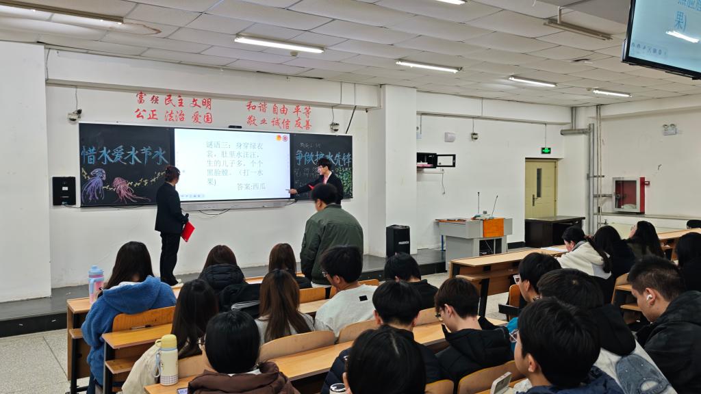 本次活动创新采用“知识科普+趣味互动+行动指引”的形式,打破了传统宣传的单一模式,让同学们在参与中学习、在互动中感悟,不仅系统掌握了节水护水的专业知识和实用技巧,更让节约用水的理念真正入脑入心、落地生根。与此同时本次主题活动的趣味互动环节备受同学们的欢迎,成为节水知识传播的重要载体,活动以班级为单位计分比拼,设置节水知识抢答与趣味游戏两大板块,现场氛围热烈非凡。通过“节水知识抢答”“一水多用挑战”等环节,让同学们在轻松氛围中巩固节水知识,进一步激发参与热情。大家纷纷表示,通过本次主题团日活动,不仅系统学习了节水知识,更深刻认识到节水护水的紧迫性与重要性,未来将从自身做起,从点滴小事做起,自觉养成节水习惯,主动参与护水实践,以青春之力守护碧水清流。