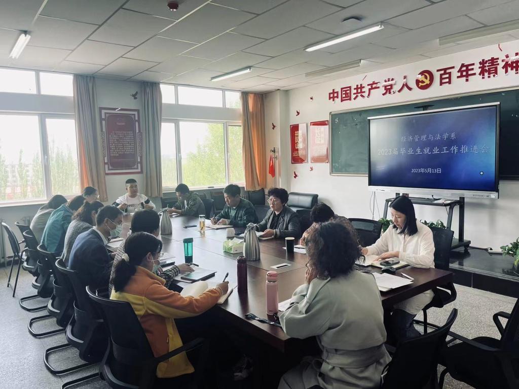 为扎实推进我系2023届毕业生就业工作,5月13日上午,经济管理与法学系在品学楼422会议室组织召开第五次2023届毕业生就业工作专项会议,系领导班子成员、就业科、各教研室主任、毕业班辅导员参加了会议,会议由乌力吉白乙拉副主任主持。