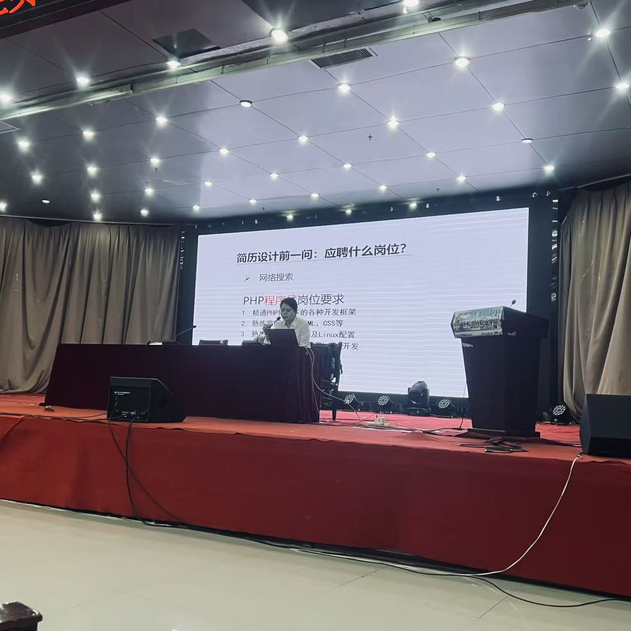 在就业指导讲座环节,主讲嘉宾乔鑫老师从企业招聘视角出发,围绕简历制作与面试技巧两大核心内容展开讲解。在简历制作环节,通过对比优秀与不合格简历案例,详细拆解简历结构设计、内容筛选、亮点突出等关键要点,强调简历需 “针对性匹配岗位需求”,避免 “千人一面”。针对面试环节,她系统讲解了结构化面试、无领导小组讨论等常见面试形式的应对策略,现场演示面试礼仪规范,并通过模拟问答场景,指导同学们如何清晰表达职业规划、展现自身优势。