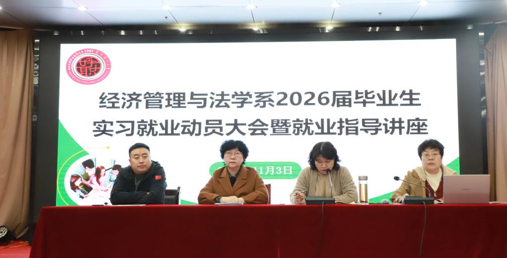 为帮助2026届毕业生明确实习就业目标,提升职业竞争力,2025年11月3日,经济管理与法学系在学校图书馆一楼报告厅开展2026届毕业生实习就业动员会暨“简历制作与面试技巧”就业指导讲座。系领导班子成员、就业科、全体辅导员及 2026 届全体毕业生参加活动,讲座特别邀请内蒙古农业大学大学生职业生涯规划教研室主任乔鑫老师担任主讲嘉宾。