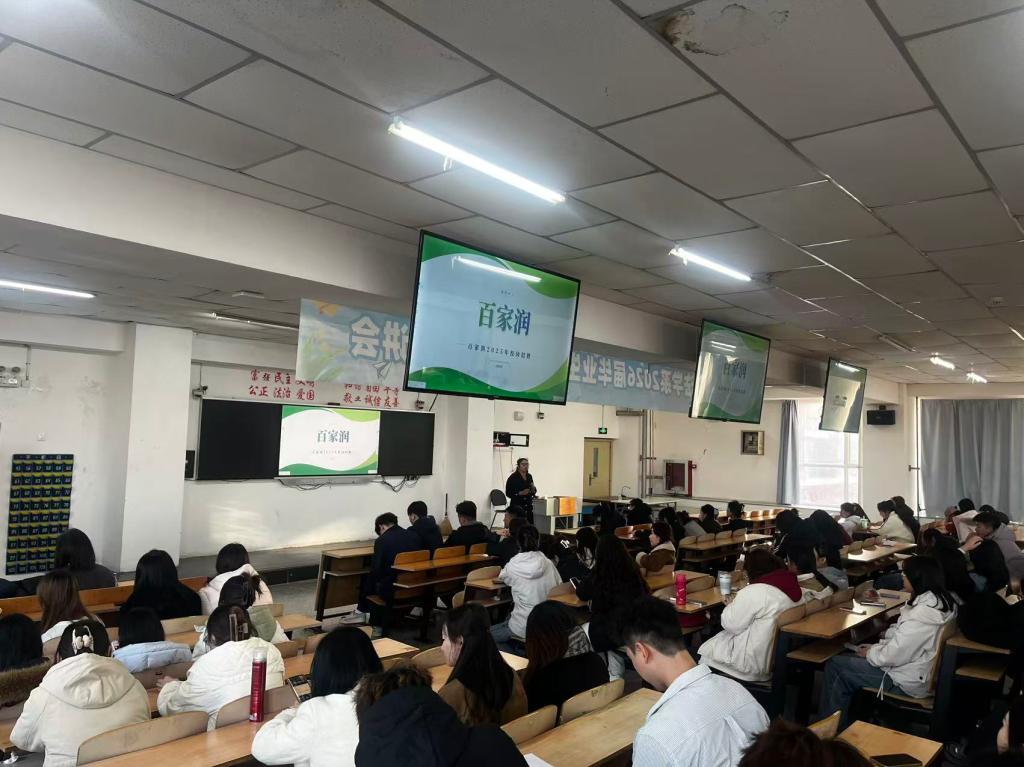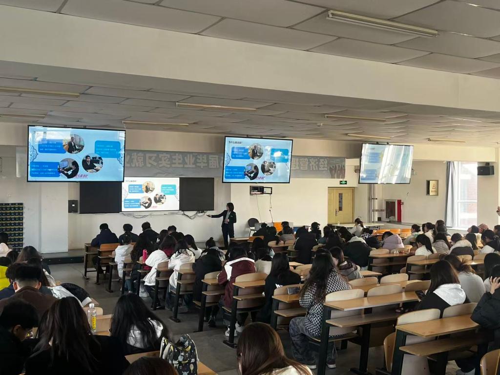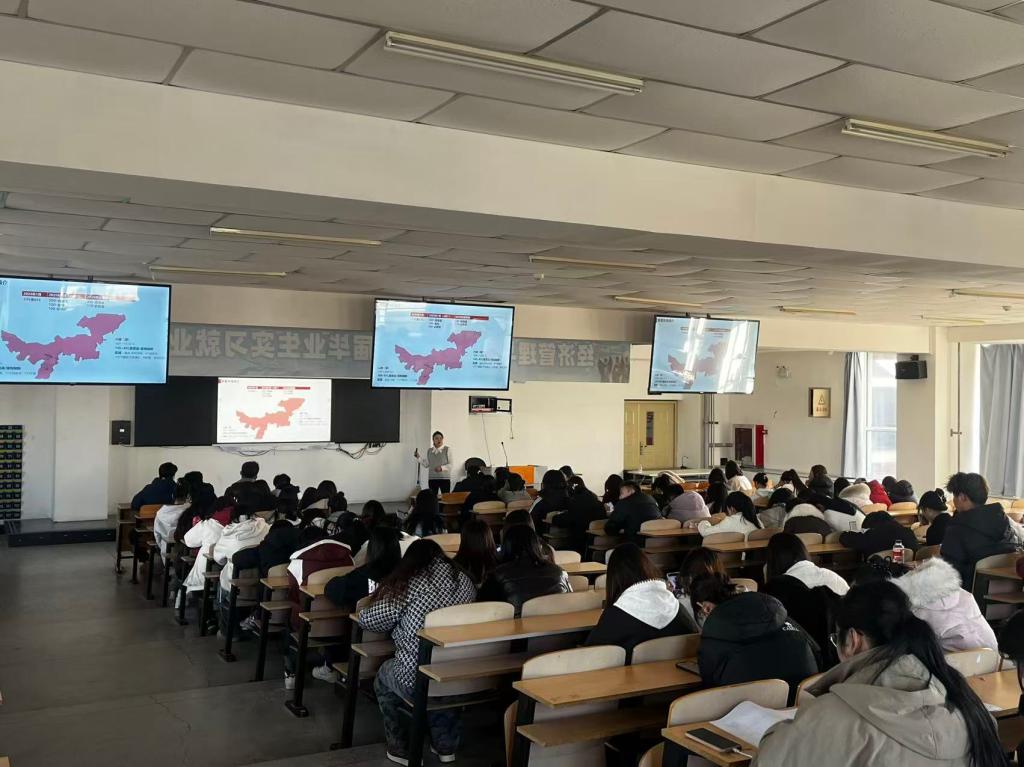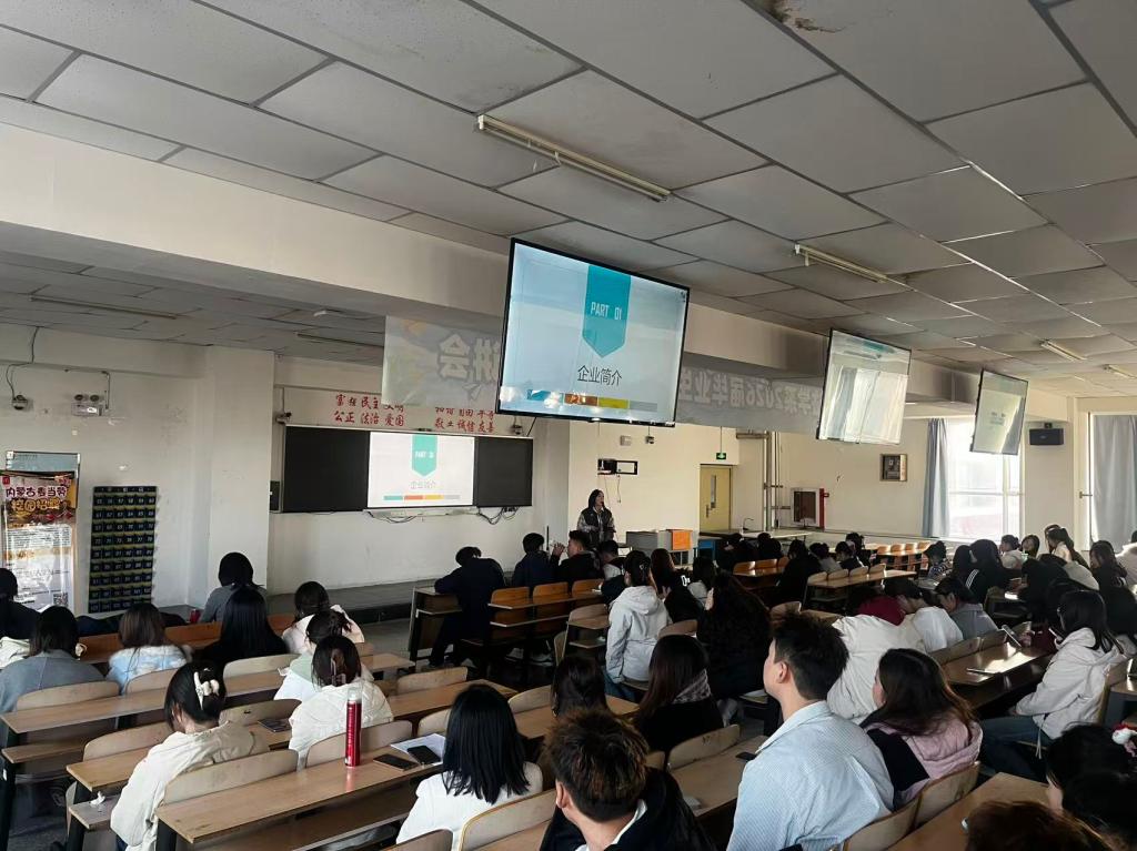 为搭建校企精准对接平台,助力2026届毕业生高质量就业,2025年11月11日下午,经济管理与法学系在品学楼409阶梯教室举办举办2026届毕业生招聘宣讲会。本次宣讲会汇聚11家优质企业,涵盖互联网科技、金融服务、零售贸易、餐饮等多个领域,为毕业生带来电商运营、市场营销、财务管理、餐饮管理、客服等多元化岗位选择,现场气氛热烈有序。参加本次招聘宣讲会企业有北京电信发展有限公司、北京环球影城、中国百胜集团、万浩集团、内蒙古栗多美企业管理有限公司、内蒙古中教文化传媒有限公司、内蒙古塞外牧丰食品科技有限公司、内蒙古润隆餐饮管理有限公司、内蒙古蒙马乳业有限公司、内蒙古发展大厦酒店有限公司、呼和浩特百家润商业管理有限责任公司。
