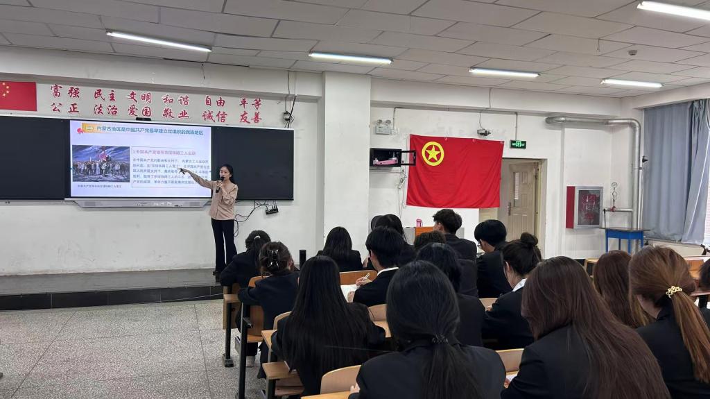 查森老师以“北疆红石榴”为切入点,生动阐释了新时代青年在民族团结进步事业中的责任与使命。她指出,“红石榴”象征着各民族紧密团结、籽籽同心的精神内核,北疆作为多民族聚居地区,青年学子更应主动成为维护民族团结的践行者、推动者和传播者。讲座围绕“感党恩、听党话、跟党走”三大主线展开。查森老师结合党的民族政策发展历程,通过详实的历史案例与数据对比,回顾了中国共产党带领各族人民实现从站起来、富起来到强起来的伟大飞跃,强调“没有中国共产党,就没有边疆各族人民的幸福生活”。她特别提到内蒙古自治区在党的领导下取得的脱贫攻坚、生态保护等成就,号召青年学子以实干担当回报党的恩情。