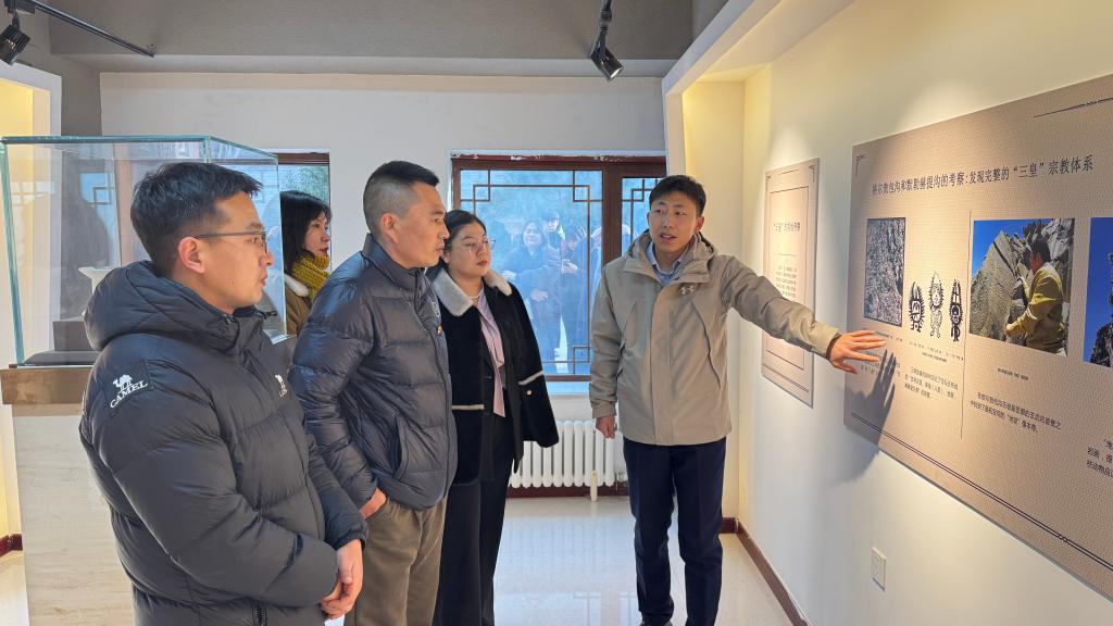 会议结束后,在王彦睿书记的引领与讲解下,交流团一行参观了内蒙古鸿德文理学院岩画研究院。师生们通过观摩珍贵的岩画实物与资料,深刻感受了内蒙古深厚的历史文化底蕴,进行了一次生动的中华优秀传统文化和民族团结进步教育。
