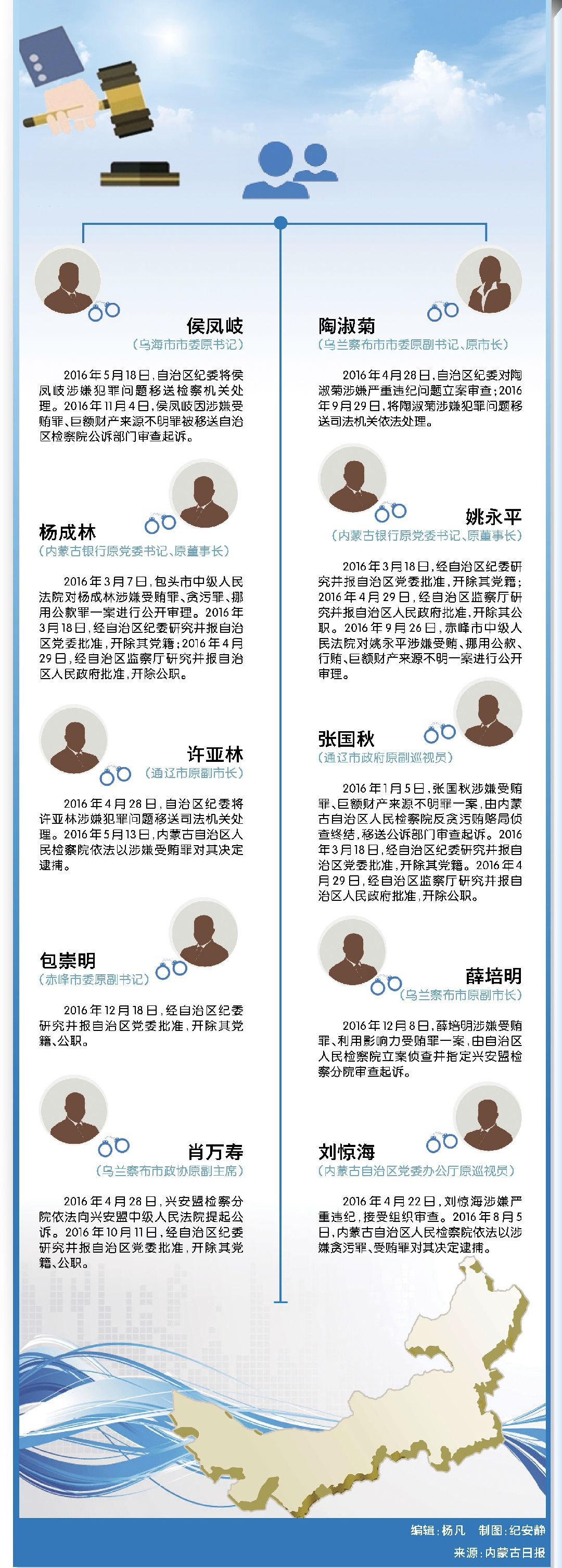 2016年,乌兰察布市委原书记王学丰、巴彦淖尔市委原书记何永林、通辽市原副市长张国秋、兴安盟原副盟长步进来等一大批“老虎”受到查处……一年来,紧锣密鼓、高压反腐下,全区“打虎”声势强大,成绩斐然。