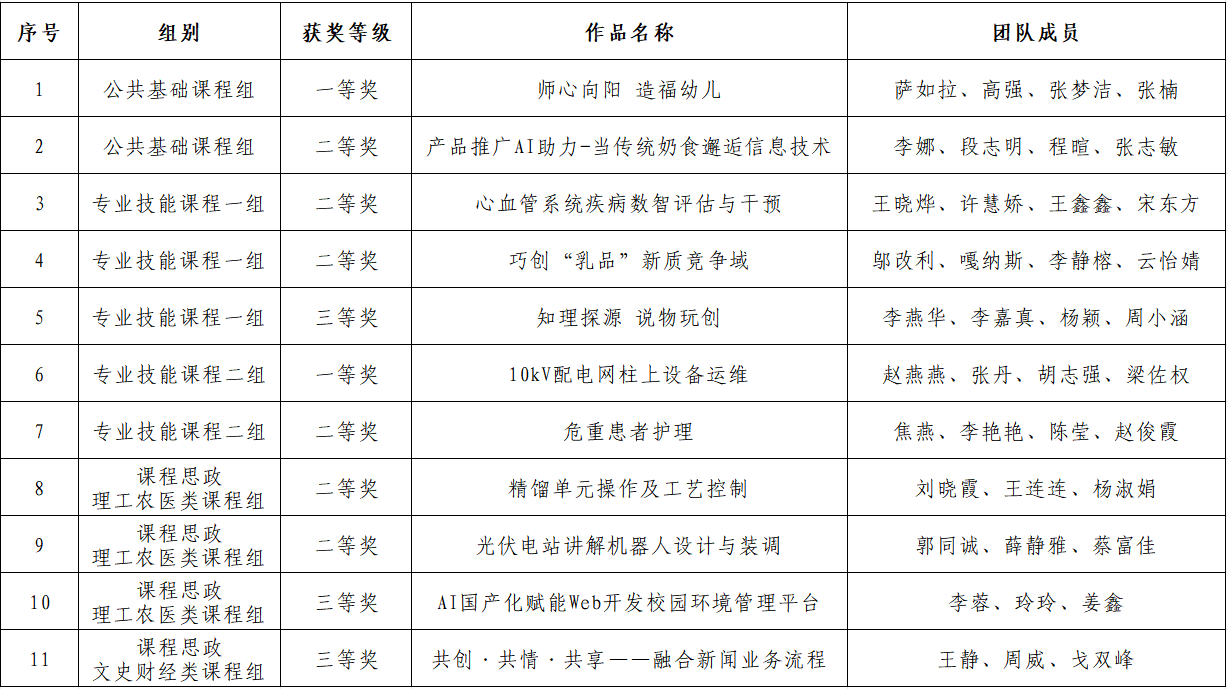 近日,自治区教育厅发布了《关于公布2025年全区职业院校技能大赛教师业务能力比赛获奖名单的通知》,我校参赛团队凭借深厚的专业积淀、创新的教学设计与默契的团队协作,在众多参赛队伍中脱颖而出,再创亮眼佳绩。推荐的参赛作品全部获奖,斩获一等奖2项、二等奖6项、三等奖3项,以获奖总量及等次双冠的成绩领跑全区,且首次实现该赛事历年来的“大满贯”,刷新了学校在该赛项的历史最佳纪录,充分展现了学校教师队伍专业素养与教学创新能力的稳步提升。
