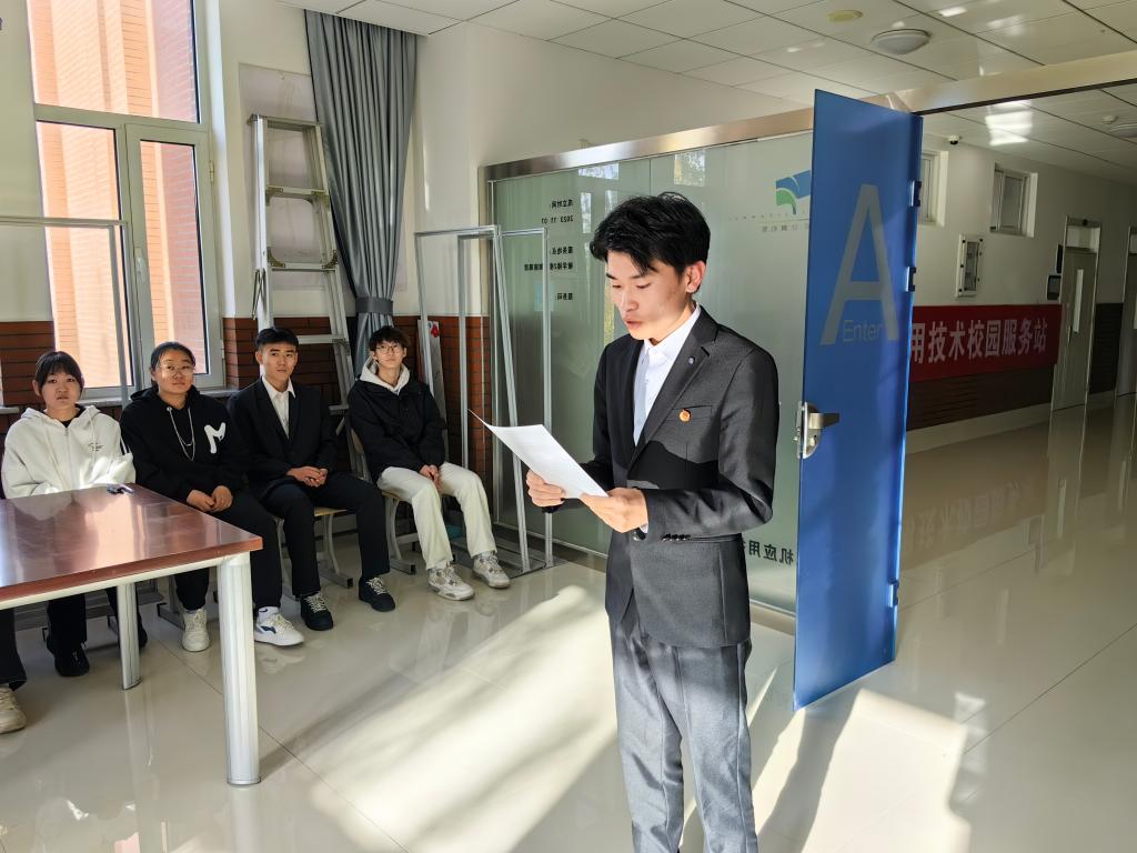 新一届竞选人员依次上台,就自己对计算机应用技术服务队的认识、在过去工作中取得的成绩和未来工作规划方面进行演讲,展示了他们做好工作的信心,流露着青春的朝气与奋发的斗志。郝晓东老师对过去一年的工作进行了总结,回顾了团队的成长历程和取得的成绩,肯定了服务队在促进校园信息化建设、协助师生解决技术难题等方面所发挥的积极作用,并对未来的发展提出了展望与期待。他希望同学们要再接再厉,勇于挑战自我,不断突破能力边界,迎难而上,继续传承志愿服务精神。张书恒老师对过去一年服务队所取得的成绩给予了高度评价与认可。她表示,无论是电脑维修、系统升级还是数据恢复,服务队成员们都全力以赴,用专业知识为师生们排忧解难,专业而细致服务得到了广大师生的一致好评,为我系学子树立了良好的榜样,希望同学们今后能够继续以严格的标准要求自己,为谱写服务队新的历史篇章而不懈奋斗。同学们纷纷表示,将继续秉承“服务他人,提升自己”的宗旨,不断提升自己的技术水平,探索新的服务模式和方法,为师生提供更加高效、便捷的信息技术服务,为我系的信息化建设贡献自己的力量。参加此次活动的有系党总支书记舒杰、副主任王瑾瑜、实训中心主任冉明、学团科副科长兼团总支书记张书恒、实习实训教研室教师郝晓东。