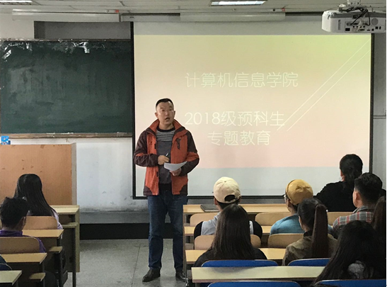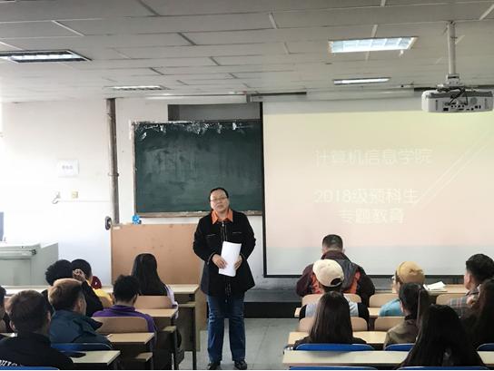 为了使2018级少数民族预科生更好、更快地适应大学生活,帮助预科生养成良好的学习和生活习惯,计算机信息学院于11月6日在教学楼314教室对全体2018级预科生开展了专题教育活动。学院副院长杨丽、学团科副科长高亮、学团科副科长兼团支部书记王利华以及18级预科班辅导员敖金山等参加了本次活动。