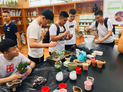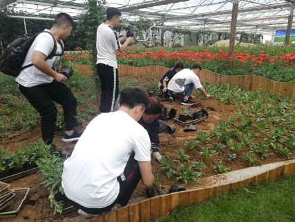 随后,志愿者们帮助园区的工人种植小草、养护小草、学习押花,用天然的花朵和叶片,拼成一幅又一幅美丽的图画,同学们深深的感受到了大自然的魅力。