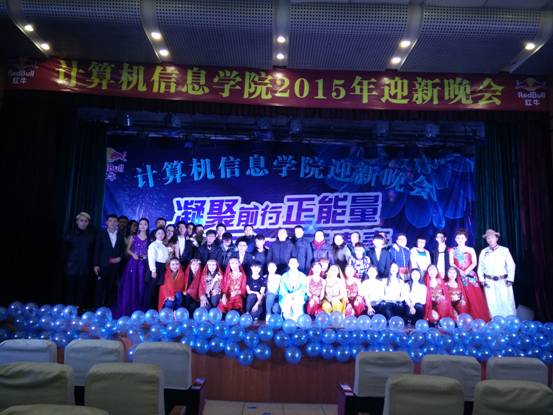 为了欢迎2015级新生,同时也是迎接2016年新年的到来,展现计算机信息学院团结和谐、积极向上的风貌和莘莘学子的风采,12月2日晚6:40,由呼和浩特职业学院计算机信息学院团总支、学生会主办的“凝聚前行正能量、砥砺奋进正青春”主题迎新晚会在呼和浩特职业学院百年讲坛炫目起航。