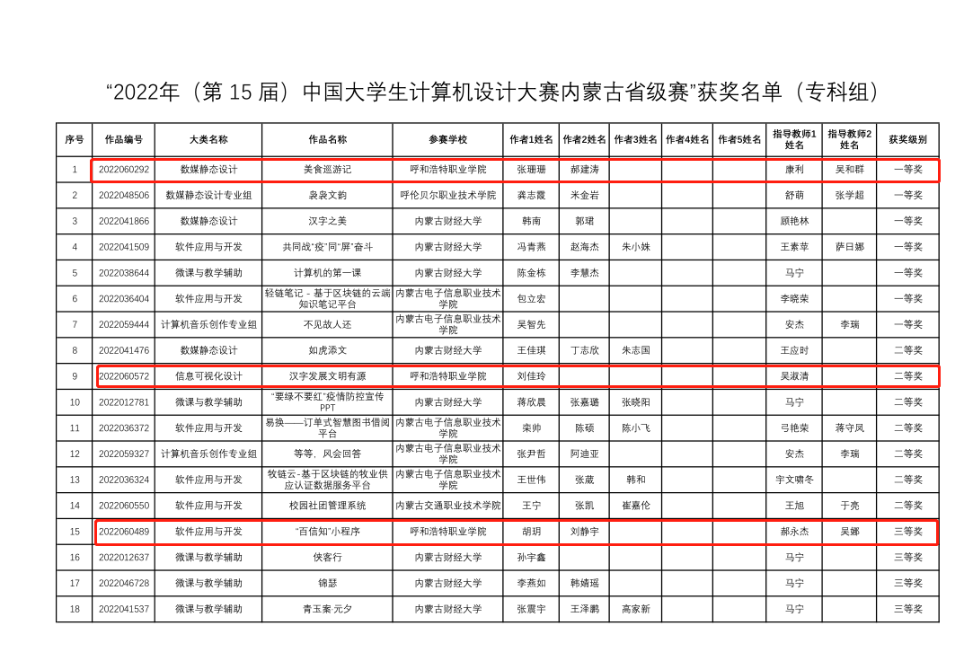 我院计算机系张珊珊、郝建涛同学荣获一等奖,指导教师为康利和吴和群;计算机系刘佳玲同学获二等奖,指导教师为吴淑清;计算机系胡玥、刘静宇同学获三等奖,指导教师为郝永杰。