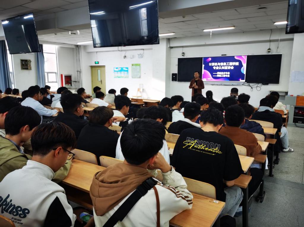为使2025级新生深入了解所学专业,明晰未来发展方向,增强专业认同感与职业规划意识,计算机与信息工程学院于10月14日下午15:30在指定会场隆重举办了2025级新生专业认知宣讲会。各专业负责人及全体教师出席活动,为新生带来了一场内容详实的专业介绍。