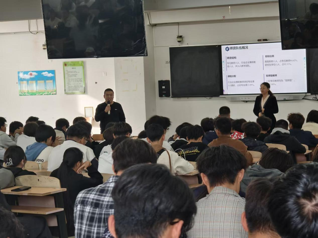在宣讲过程中,各位负责人针对各专业进行了系统而深入的解读,不仅生动阐述了各专业的发展脉络与基本概况,更突出强调了其在就业市场中的独特优势与鲜明特色;在课程体系方面,详细介绍了以就业为导向、理论与实践相结合的课程设置;同时,也充分展示了我院先进的教学设施与优良的教学条件。此外,宣讲还涵盖了行业相关的技能认证体系、与多家知名企业开展的深度校企合作项目,以及各专业广阔的就业前景与多元发展方向,为新生勾勒出清晰而充满希望的职业蓝图。