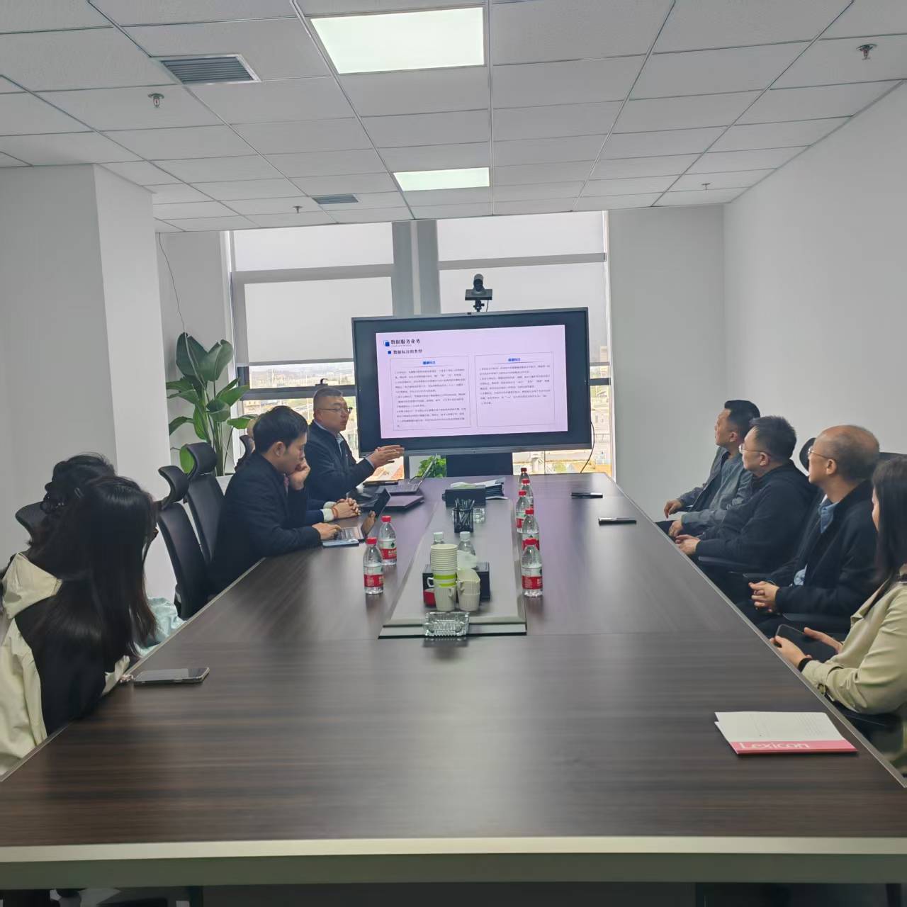 在内蒙古数据要素服务中心,中心负责人详细介绍了平台建设背景、核心功能、运营模式及用人需求。舒杰书记结合计算机系专业建设方向提出,希望以数据要素产业发展为契机,在课程内容更新、实践基地建设等方面深化合作,培养符合产业需求的复合型数据人才。