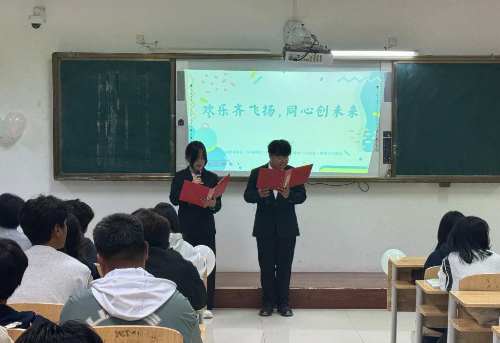 为了弘扬中华民族优秀传统文化,丰富校园文化生活,帮助新生快速融入计算机系校园文化,增进对各社团特色的认知,搭建新生与社团、师生间的互动平台,计算机系于2025年10月16日晚上在敏学楼201教室组织开展“欢乐齐飞扬,同心创未来”主题社团迎新活动。团委社团管理部、计算机系全体社团负责人、学生干部和社团成员代表参加活动。