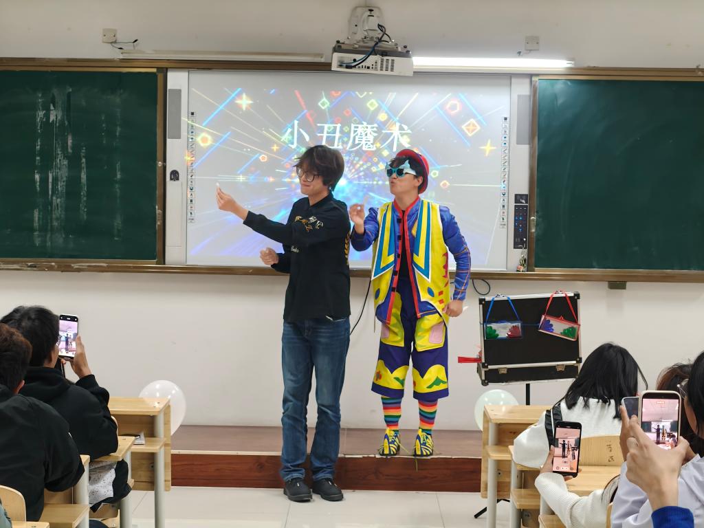此次活动在us说唱社的说唱表演中火热开场,成员用富有节奏的演绎瞬间点燃现场氛围。随后,各社团依次呈现特色节目:动感喜剧社带来歌曲演唱,DH舞蹈社接连带来风格各异的舞蹈表演,惊堂木电影社献上歌曲演唱。其中,AI科社的小丑表演尤为吸睛,表演者化身小丑,以夸张的妆容、滑稽的肢体动作迅速抓住全场目光,将活动氛围推向高潮。趣味游戏环节让新生积极参与,现场互动频频。各社团的才艺展示如星光璀璨,成员们用才华与热情营造了活力满满的迎新氛围,每一个节目都展现了社团的独特魅力与成员的青春风采。
